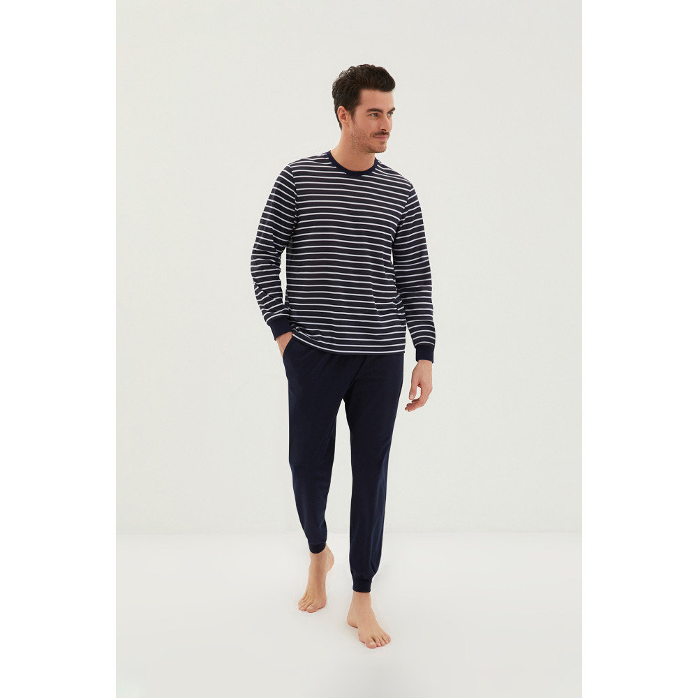 3'lü Bisiklet Yaka Çizgili Pijama Takımı